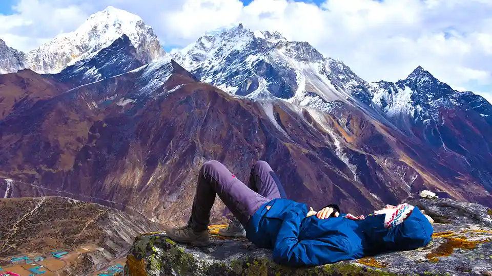 Gokyo Lake is composed of six spectacular glacial lakes with an altitude between 4700 meters and 5000 meters, making it one of the highest freshwater lakes in the world. From these sparkling turquoise lakes, you can see amazing panoramic views of more than 8,000-meter-high peaks, including Mount Everest from Gokyo RI.